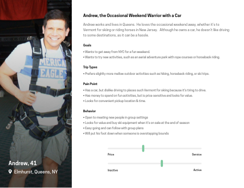 The primary target audience is active urbanites who enjoy outdoor activities and events. This product is trying to solve the pain point of individuals attending destination & events around metropolitan areas without a car (or those who doesn’t want to drive).