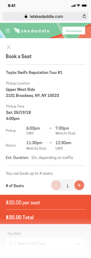 Skedaddle is a destination and event-based bus transportation, mainly in the New York and Boston metropolitan areas. It differs from other bus transportation in that it takes users directly to a destination, such as a ski resort or an event, such as a concert. It started out a crowd-sourced bus-transportation service and pivoted during the time I was there. A lean approach is used to build, measure, and learn about the product.